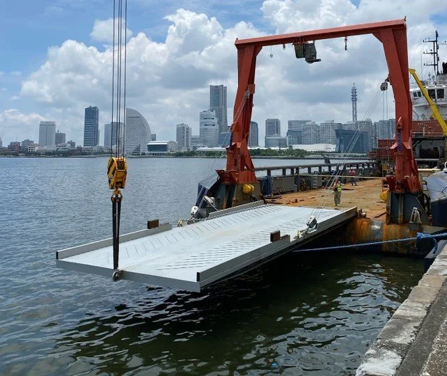 Another application of Naval Architecture are floating piers and CSE has successfully designed these types of structures in both aluminum and steel materials.
